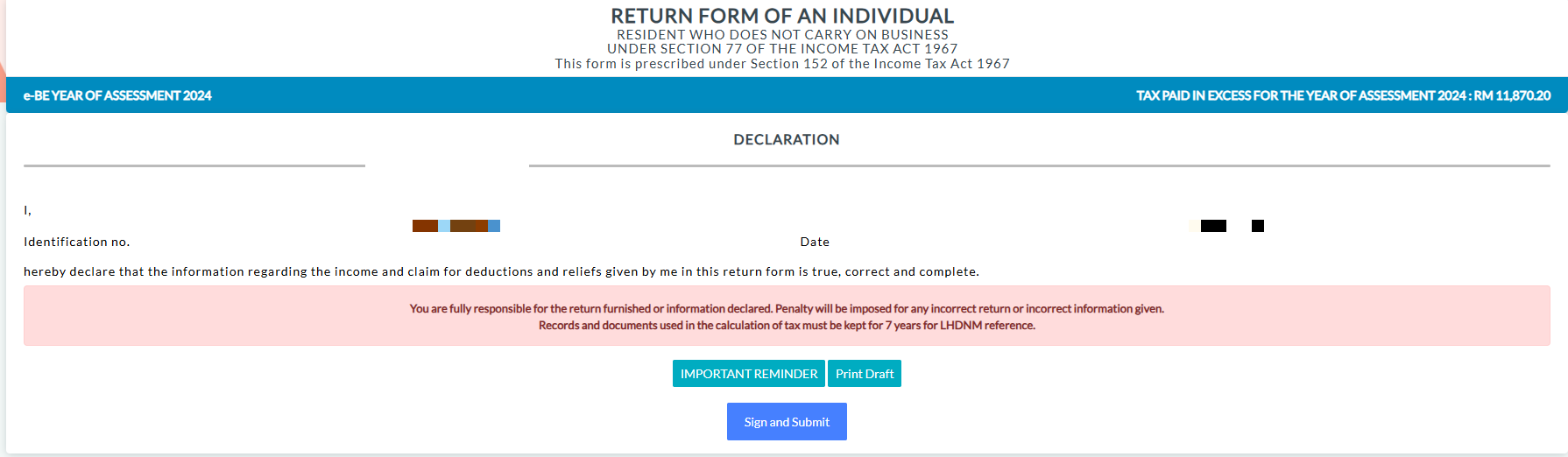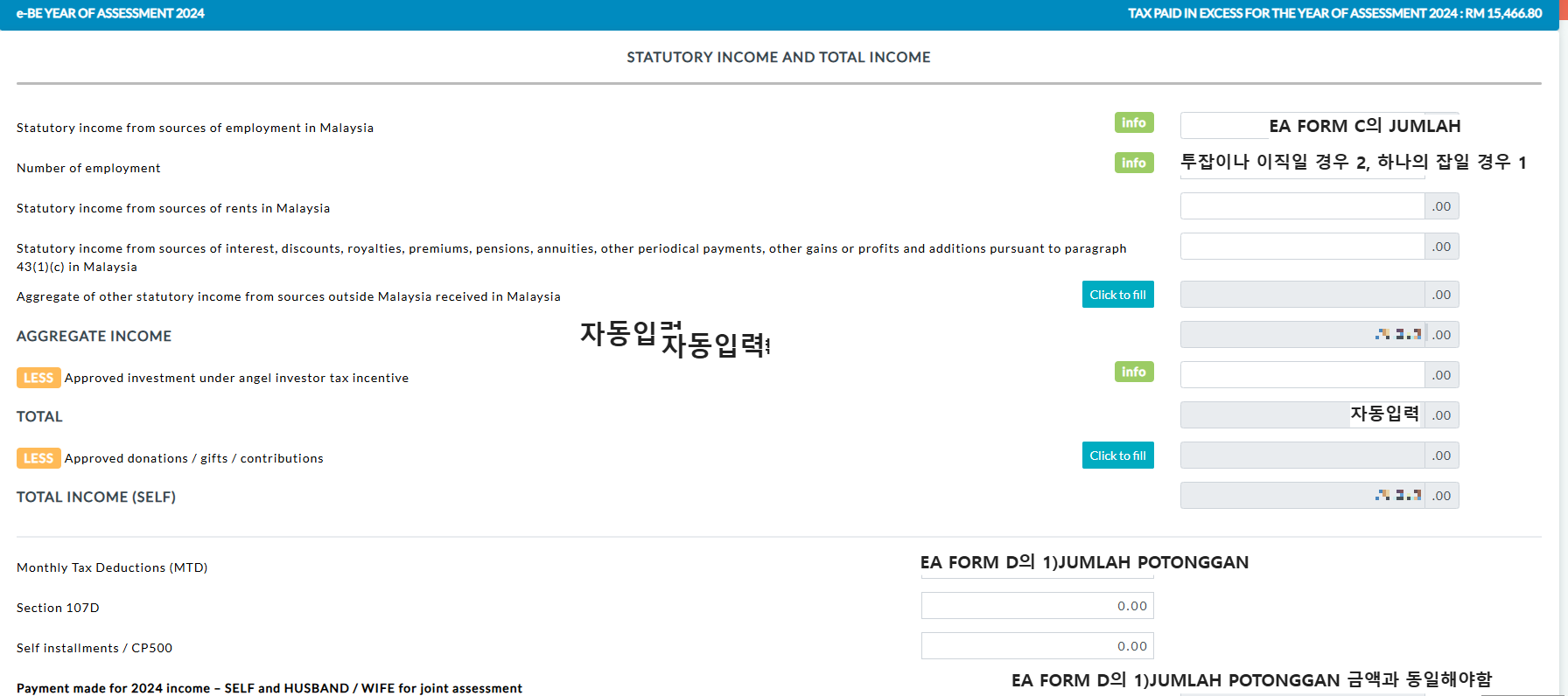 - Tax Identification Number (TIN): EA Form에 나온 No. Pengenalan Cukai (TIN) Pekerja