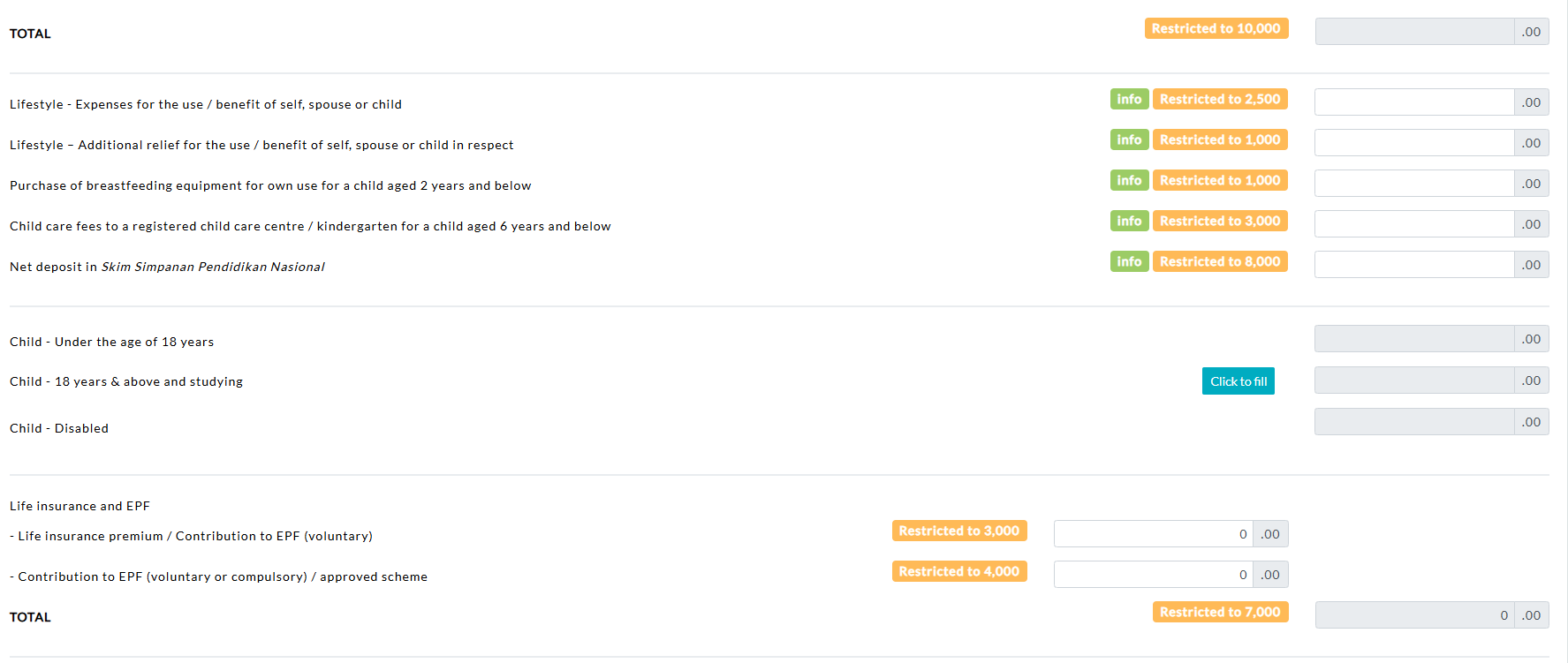 ✔ Lifestyle - Additional relief for self, spouse, or child